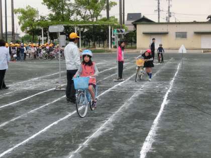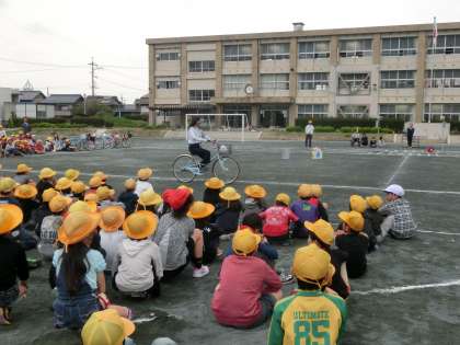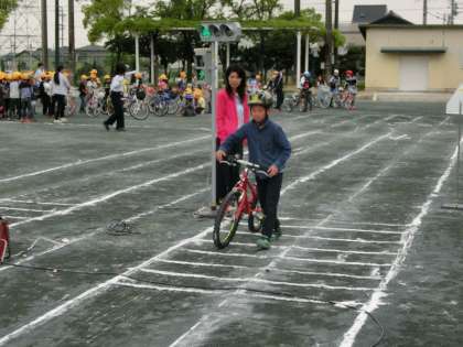 4月27日(水)の4年生 【安全な連休を過ごすために!】 公開日 2016/04/27 更新日 2016/04/27 4年 交通安全教室が行われ、安全な自転車の乗り方について交通課の方に教えていただきました。4年生は代表の児童が見本を見せてくれました。 連休中の安全を守るため、ぜひ家庭でも、交通安全についてルールの確認をしてみてください。