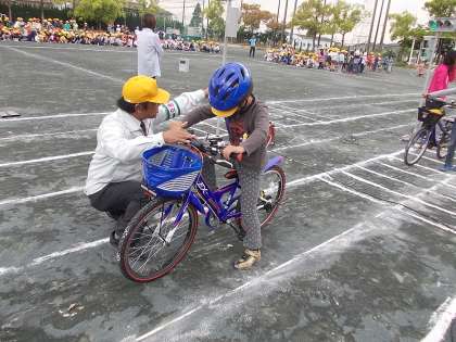 (下)3年生以上の人は、正しい自転車の乗り方について教えていただきました。