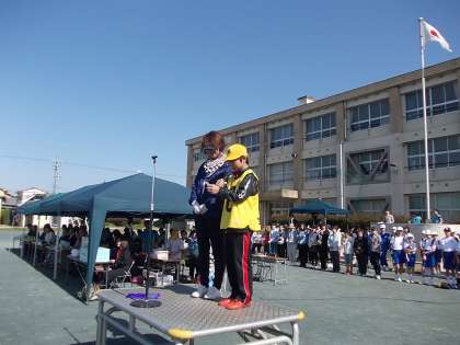 五月晴れの青空の下で、第60回児童福祉大会が本校グラウンドで行われました。この児童福祉大会は、5月5日から11日までの児童福祉週間にあわせて行われる行事の一つです。こうした行事を通して、次代を担う宝である子どもたちの健全育成について家庭・地域・学校が連携することの大切さを考えていきたいと思います。