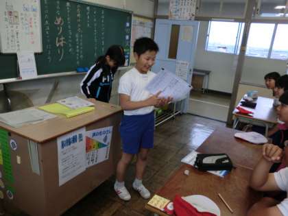 朝のスピーチスタート!・算数もみんなで考えました!【5月10日(火)の6年生】 公開日 2016/05/10 更新日 2016/05/10 6年 今日から日直さんが朝の会でスピーチをする活動がスタートしました。日直さんの良い所や好きなことを知ることができるので今後も楽しみですね。 また、算数では、まとめをクラスで考えたり黙々と問題を解いたりできましたね。