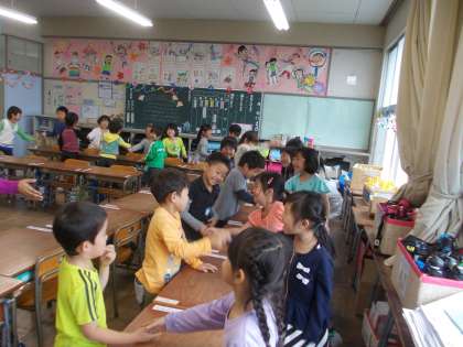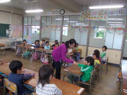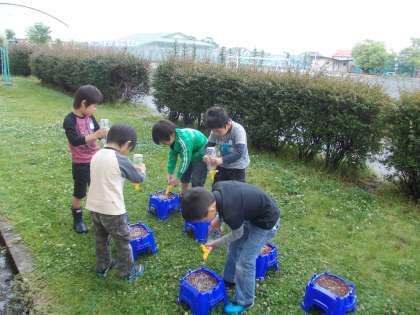 英語の勉強 楽しいね 【5月10日(火)1年生】 公開日 2016/05/10 更新日 2016/05/10 1年 今日は、初めての英語活動がありました。先生の自己紹介を聞いて、たくさん質問していました。 3枚目の写真は、朝顔の種まきをしているところです。大きくなるようにと願いを込めて水をやりました。