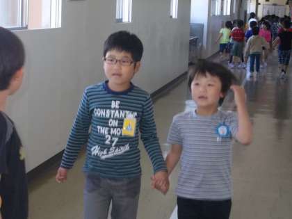 今日は、2年生の仲良しペアさんと学校探検に行きました。いろいろな部屋があって、びっくりしました。