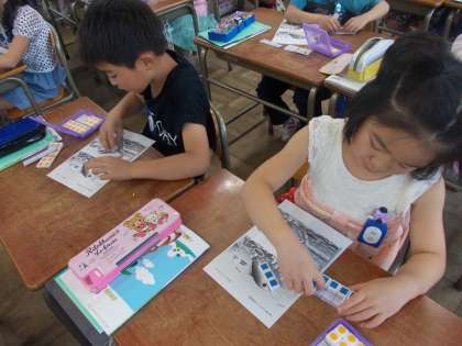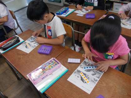 今日から長さ比べの学習スタート!まずはブロックで、魚の大きさ比べ。