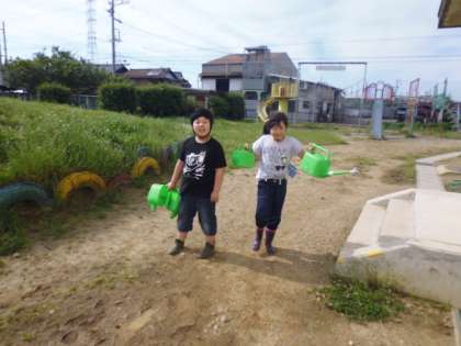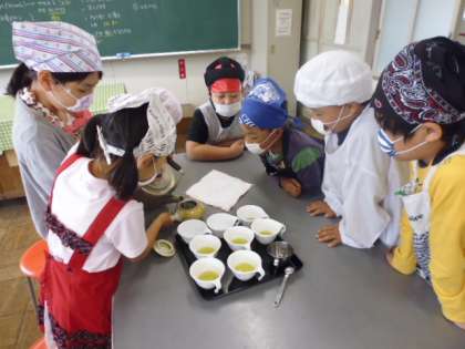生活委員会の活動で廊下を静かに歩いている友達に「かめさんカード」を渡しました。とても静かに右側を歩いている子が多くいました。家庭科で初めての調理実習があり、ガスコンロの使い方やお茶の入れ方の練習をしました。学年園の畑に水をたっぷりあげました。