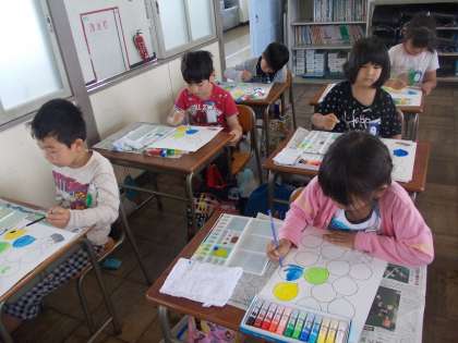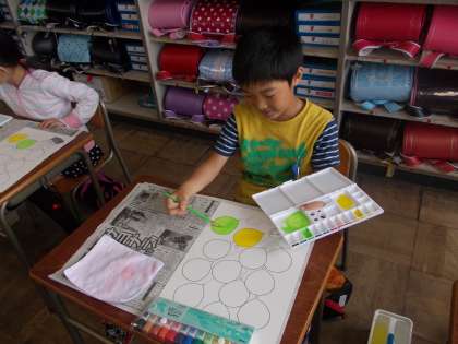 パレットや水入れの使い方を確認しながら、丁寧にがんばりました。