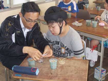 インゲンマメ観察中 【5月19日(木)の5年生】 公開日 2016/05/19 更新日 2016/05/19 5年 理科の時間です。 植物の成長に、日光や肥料は関係があるのか調べています。 インゲンマメの根を切らないよう、慎重に植えかえをしました。 結果が楽しみだね。