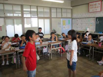 道徳で役割演技 【5月23日(月)の4年生】 公開日 2016/05/23 更新日 2016/05/23 4年 道徳では、最後のまとめを役割演技で行うことがあります。今日は、ペアで役割を決めて、登場人物の気持ちになって、せりふを考えました。