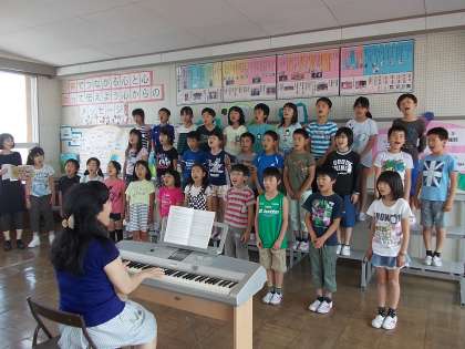 4年生の音楽では、「プパポ」の曲を歌っています。「プ」「パ」「ポ」を丁寧に発音して、声を遠くの届ける感じできれいなひびきの声で歌おうと、一生懸命に歌っていました。