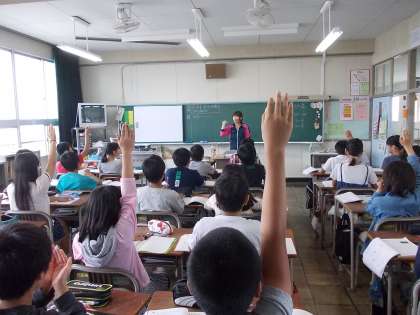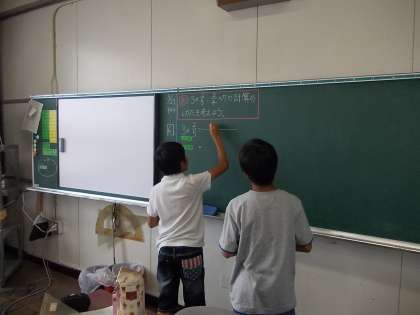 6年生の算数では、分数×整数の計算を学んでいます。今まで習った知識からどのように計算をしたらよいかを考えることができました。ペアで考え方を確認して、自信をもって発表することができていました。