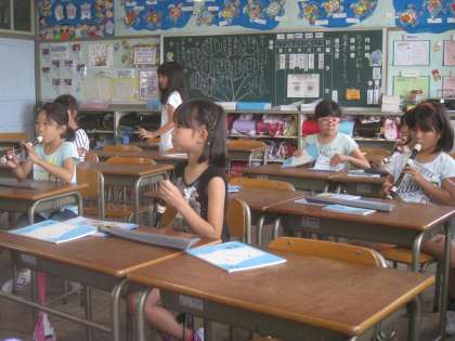 風は爽や・・・でも、やっぱり暑い一日でした。そんな中、子どもたちも「暑いなあ。」と言いながらも、楽しい一日を過ごすことができました。音楽、道徳、理科、そして、何と!算数のテストまで楽しいと話してくれます。そんな一場面をどうぞ!(リコーダーの場面は、放課での一枚)