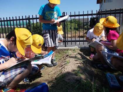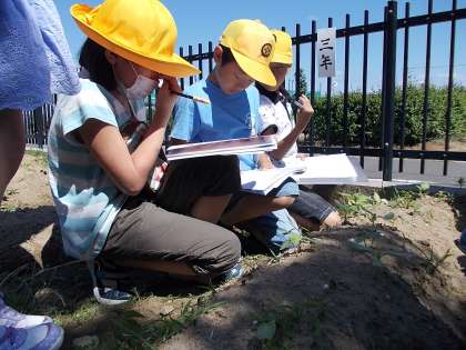 どんどん育っていてうれしいな(6月2日の3年生) 公開日 2016/06/02 更新日 2016/06/02 3年 GW明けから育てているオクラやヒマワリ、ホウセンカの観察をしました。オクラの子葉と本葉の違いをじっくりと観察し、形や模様の違いを次々にノートに記入していました。 花が咲くまではもう少し時間がかかりそうです。どんな生長をしていくのか、今後もたのしみですね。