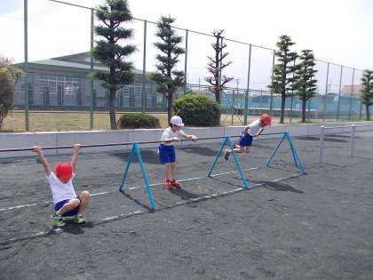 体育では鉄棒運動をしています。今回は、回るわざと下りる技を練習しました。鉄棒の練習をした後は、肩や腕の筋肉が痛いという子もいましたし、もりもりの筋肉を見せてくれる子もいました。