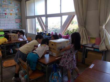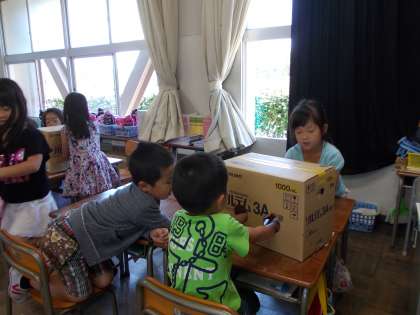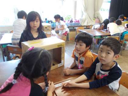 算数の学習【6月6日(月)の1年生】 公開日 2016/06/06 更新日 2016/06/06 1年 算数の「いろいろなかたち」で、仲間わけの学習をしました。グループで、箱の形・つつの形・ボールの形を見ないで、触って特徴を探り、形さがしゲームをしました。楽しく学習することができました。