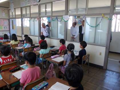 今日は、浅井町の町会長の皆様が児童の授業の様子を見に来ていただきました。中小学校は、町内の防災訓練や町民運動会などで使用されますので、グラウンドには何度も来ていただいていますが、校内を回っていただくのは初めてです。ICT機器を使っている授業や子どもたちの一生懸命な様子を熱心に参観していただきました。多くの地域の方に学校の様子を知っていただき、学校と地域のつながりを深めていきたいと考えています。本日は、学校においでいただき、ありがとうございました。