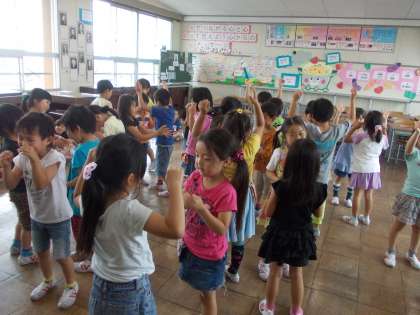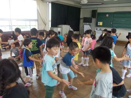 ふれあい音楽&体育 【6月10日(金)1年生】 公開日 2016/06/10 更新日 2016/06/10 1年 今日は、1年生全員で体育と音楽の学習をしました。 音楽では、2人組でリズム遊びを楽しみました。 体育では、折り返しリレーをして、体を動かしました。 幼稚園や保育園で一緒だった友達と久しぶりに活動できて、喜ぶ姿が見られました。 これからも学年合同で仲良く活動できるといいですね。