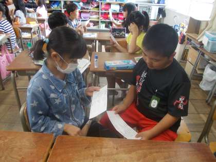 隣の子と意見を交換しています【6月13日(月)の3年生】 公開日 2016/06/13 更新日 2016/06/13 3年 授業でペア対話をしています。お隣の友達の意見を聞いてじっくり考えることで自分の力をのばしましょう。