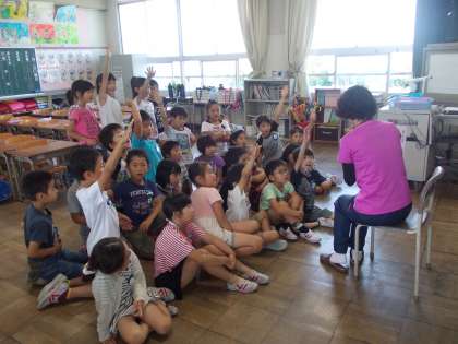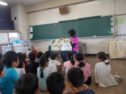 読み聞かせ 6月14日(火)の2年生 公開日 2016/06/14 更新日 2016/06/14 2年 今日は、ひなたぼっこさんによる読み聞かせがありました。1組は「わすれられないおくりもの」2組は「おやおやおやさい」「だじゃれ王国なぞなぞ動物園」を読んでいただきました。みんな本の世界に入り込んで夢中になって聞いていました。