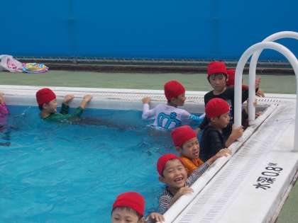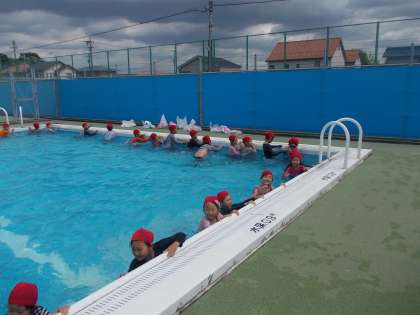 着衣泳 その2 6月14日(火)の2年生 公開日 2016/06/14 更新日 2016/06/14 2年 服を着て水の中に入ると、重くて動きにくくなることを体感することができましたね。この経験を活かして、水の事故を防いでいこうね。