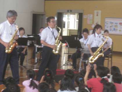 今日は、待ちに待った一宮消防音楽隊の方の演奏会の日でした。いろいろな楽器の紹介、素敵な演奏、指揮者に変身コーナー、そして全校合唱となった「音楽のおくりもの」などの本当に楽しい時間を過ごすことができました。「「イスパニア・カーニ」は、聞いたことあると話し、カスタネットの演奏にびっくり!また、キッズアニメ・メドレーでは、思わず口ずさんでしまうほどでした。生の楽器を目にし、音を耳にした今日は、本当に素敵な一日でした。
