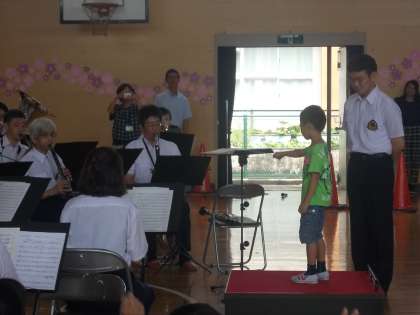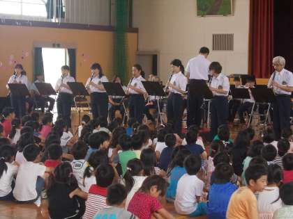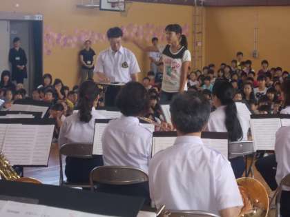 消防音楽隊演奏会 その2【6月21日(火)】 公開日 2016/06/21 更新日 2016/06/21 学校生活 いろいろな楽器の紹介をしていただいたり、指揮者体験をしたり・・ みんな目を輝かせて聞いていました。