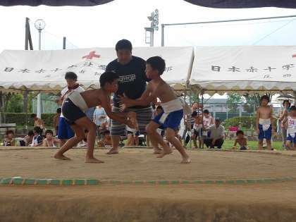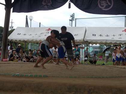 わんぱく相撲大会 その2 【7月3日(日)の浅井中小学校】 公開日 2016/07/03 更新日 2016/07/03 校長室より (上)3年生の部の様子です。残念ながら準決勝で負けてしまいました。でも敢闘賞をいただきました。 (中)4年生の部の様子です。準優勝でした。 (下)6年生の部です。頑張っている仲間を大きな声で応援しました。
