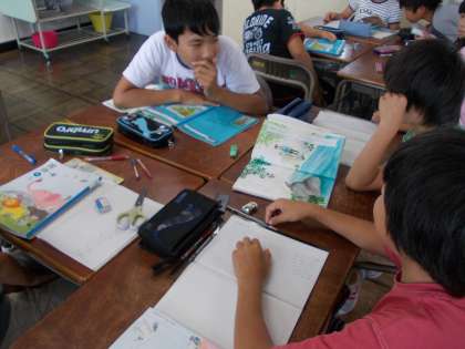 国語のグループ活動【7月6日(水)の6年生】 公開日 2016/07/06 更新日 2016/07/06 6年 国語で物語を聞いて、感想の発表をしました。友達の感想を聞いて、自分がどう思ったのかを伝え合いました。