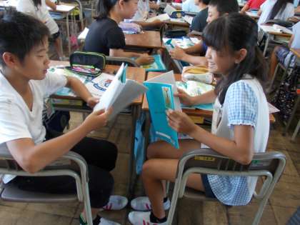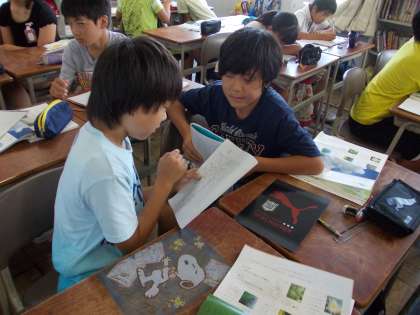 国語の時間に夏の季語を使って俳句を作りました。できた俳句は隣の席の子と発表し合いました。おもしろい句もあり、盛り上がりました。