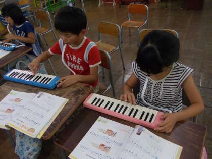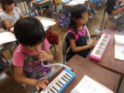 鍵盤ハーモニカで楽しく 7月8日(金)の2年生 公開日 2016/07/08 更新日 2016/07/08 2年 今日は、鍵盤ハーモニカを演奏しました。「かえるのがっしょう」「かっこう」「ドレミのかいだん」をみんなで楽しく演奏することができました。