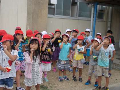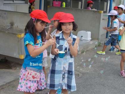 きれいだね・・・【7月9日(土) 1年生】 公開日 2016/07/09 更新日 2016/07/09 1年 生活科の学習で、シャボン玉遊びをしました。どうしたら、きれいなシャボン玉ができるかをペアの友達と試していました。 空に浮かんでいくシャボン玉を見つめる子どもたちの顔は、とてもかわいらしかったです。