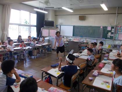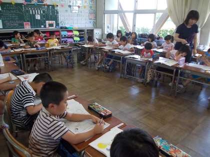 国語では、「おおきなかぶ」の勉強が始まりました。おおきなかぶをひくときのおじいさんの気持ちを考えることができるように、役割演技を使って勉強をしていました。かぶを引き抜こうとするときの掛け声はクラス全員で大きな声で言うことができました。