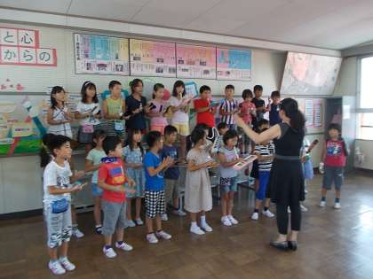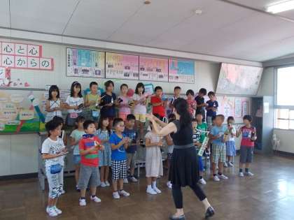 3年生の音楽では、「まほうのチャチャチャ」のリズムに合わせて、器楽合奏をしました。それぞれの楽器をもって、体を動かしながら楽しく音を合わせることができました。
