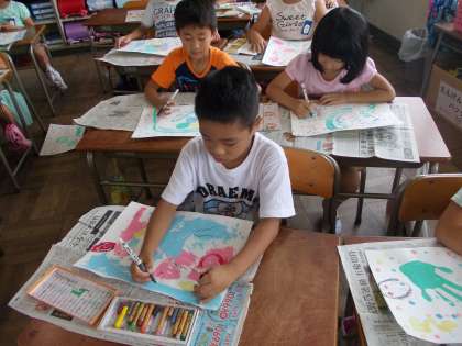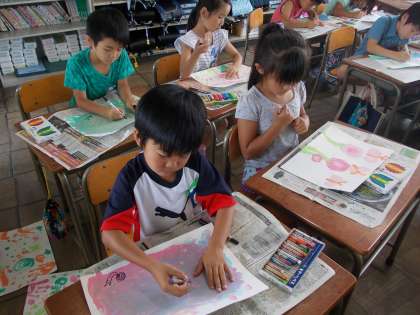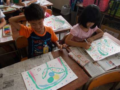 今日は、図工「とろとろえのぐでかく」の仕上げをしました。