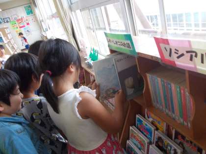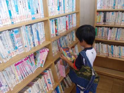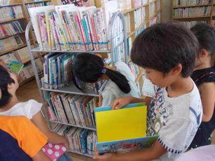 もうすぐ夏休み!今日は、図書館へ行って、みんなで夏休みの本を借りました。