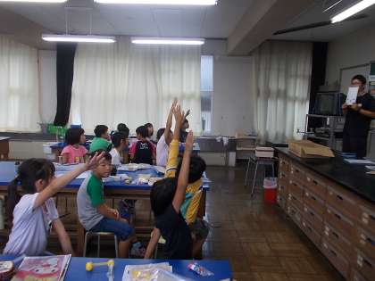 空気をとじこめると… 【7月13日(水)の4年生】 公開日 2016/07/13 更新日 2016/07/13 4年 理科の実験で、とじこめた空気に力を加えるとどうなるかを調べました。線香の煙を使って、注射器に閉じ込めて力を加えるとどうなるかを調べ、予想をしました。