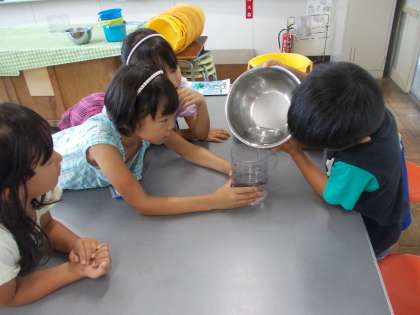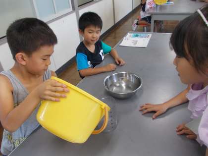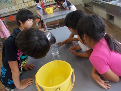 1リットルってどのくらい? その1 7月14日(木)の2年生 公開日 2016/07/14 更新日 2016/07/14 2年 今日は、算数の学習で、バケツやボールに、自分が1リットルだと思う量の水を入れてみました。