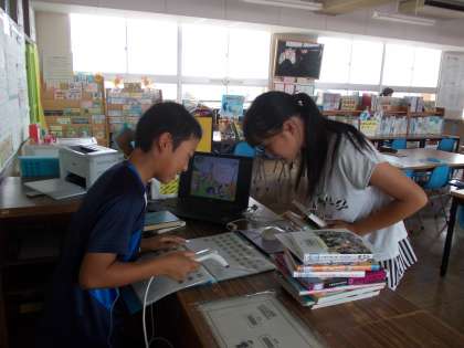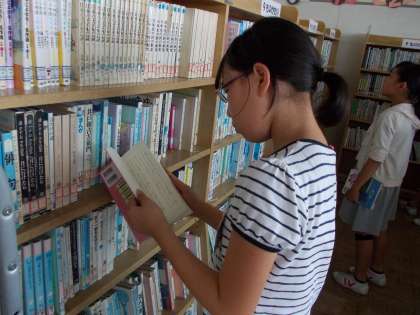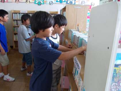 夏休みに読む本を図書館に借りに行きました。読みたい本が見つかったかな?