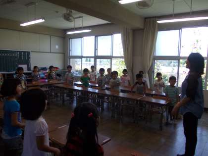 英語の時間は、いつも楽しく活動していました。水泳の時間は、どの子も自分の目標に向かって、真剣に泳ぐ練習をしました。保健指導では、保健室を利用するときの、大切なポイントを教えてもらいました。