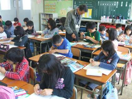 4年生の授業風景 公開日 2009/04/16 更新日 2009/04/16 4年 算数の授業で、初めてコンパスを使って、円を描きました。 合同体育では、クラス対抗ドッジボール大会を開き、とても盛り上がりました。