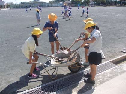 流れる水のはたらきを調べよう 【10月6日(木)の5年生】 公開日 2016/10/06 更新日 2016/10/06 5年 理科の時間です。 流れる水のはたらきを調べるため、実験用の土の山をつくりました。 みんなで力を合わせて、てきぱき土を運ぶ姿は、さすが5年生!頼もしいですね。 側溝もきれいになりました。