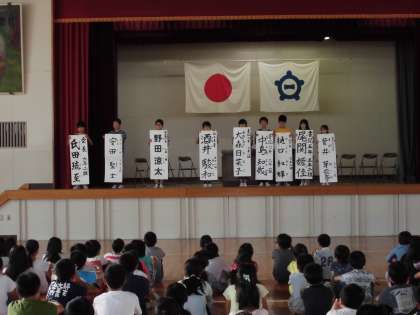 後期児童会役員選挙 【10月6日(木)】 公開日 2016/10/06 更新日 2016/10/06 学校生活 後期児童会役員選挙がありました。 どの立候補者も、「こんな学校にしたい」という強い思いを込めて演説をすることができました。 浅井中小学校を引っ張っていくリーダーとしての頼もしさを感じました。 力を合わせて、「あいさつのあふれる学校」「みんな仲良くいじめのない学校」をつくっていきましょう。
