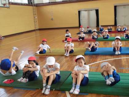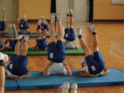 初めてのマット遊び【10月7日(金曜日)の1年生】 公開日 2016/10/07 更新日 2016/10/07 1年 初めてマット遊びをしました。「ゆりかご」や「アンテナ」などをやりました。「いぬ」や「あざらし」のまねもしました。みんな楽しくできました。