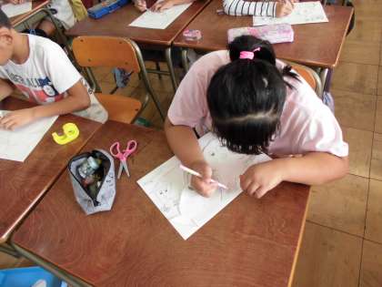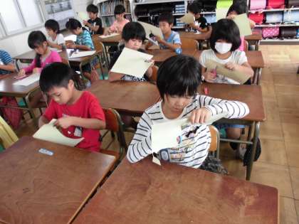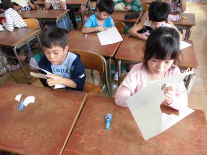 型紙をテープで留め、丁寧に写して、切ることができたね。