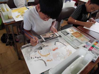順調に進んでいます【10月8日(土)の5年生】 公開日 2016/10/08 更新日 2016/10/08 5年 展覧会の絵が完成に近づいてきました。名画をじっくり見ながら、色を作り模写を進めています。