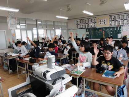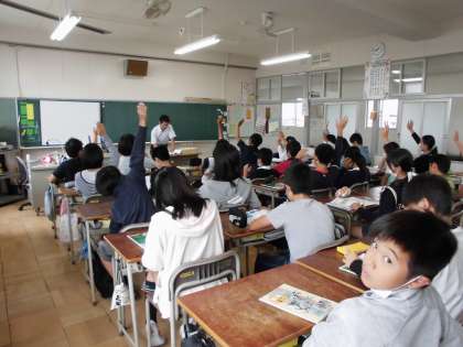 みんなの大好きな理科の時間です。挙手も積極的に頑張っていますね。