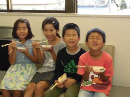 校外学習日和でした。その3【10月18日(火)3年生】 公開日 2016/10/18 更新日 2016/10/18 3年 季節外れの暑さでした。でも晴天に恵まれ、すばらしい校外学習になりました。まず、お漬物工場の見学です。衛生管理に十分気をつけて見せていただきました。試食もあって、子どもたちは大喜びでした。続いて、環境楽園では、繭を使ったストラップづくりに夢中になりました。もちろん、おいしいお弁当も!!!