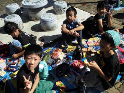 ペアの一年生の子と仲良く見学したりお弁当を食べたりしました。