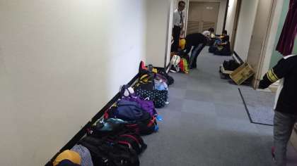 部屋の片付けも終わり、ホテルから出発する準備を進めています。