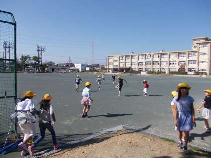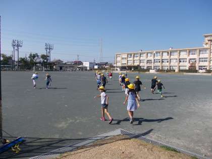 今日は雲一つない青空で気持ちの良い日でした。運動場で「おにごっこ」をしました。昨日まで修学旅行へ行っていたとは思えないほど元気よく走り回っていました。その様子を見ているとこちらまで元気になるような気がしました。