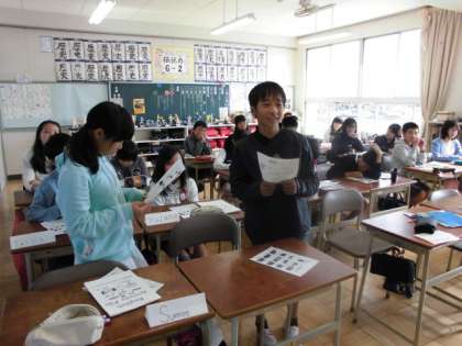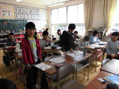英語活動【10月24日(月)の6年生】 公開日 2016/10/24 更新日 2016/10/24 6年 英語の時間にペアの子と英語で会話をしました。昨年も勉強したところですが、忘れている子も多かったので、復習できてよかったね!