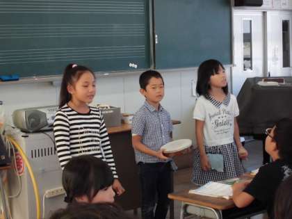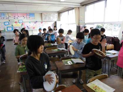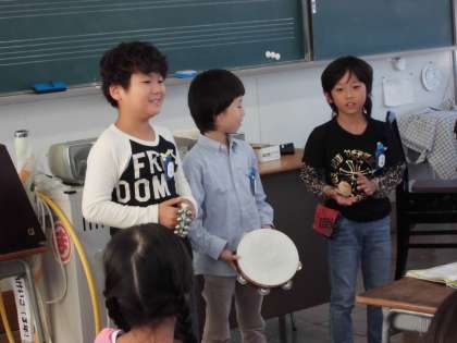 リズムにのって【10月24日(月)の2年生】 公開日 2016/10/24 更新日 2016/10/24 2年 今日は、音楽の授業で、「森のたんけんたい」を歌いました。リズムよく歌ったり演奏したりすることができました。
